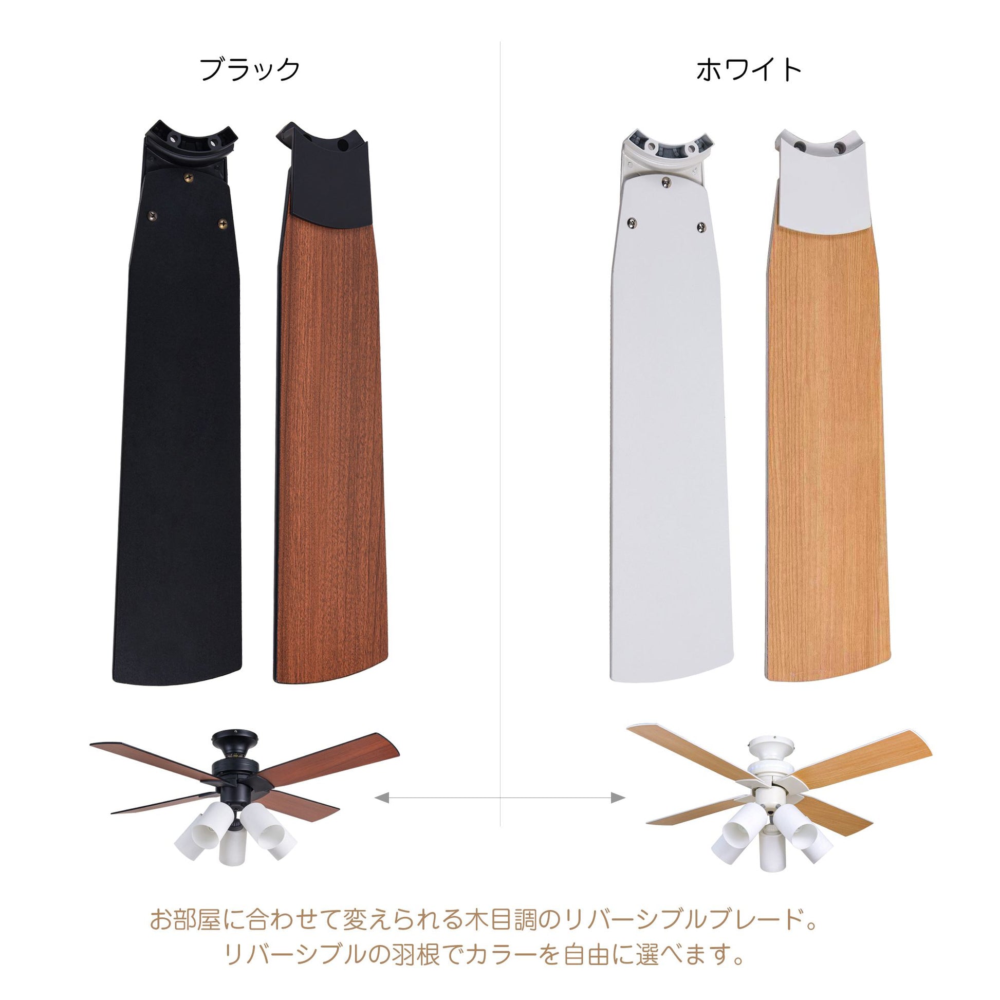 送料無料 シーリングファンライト 5灯タイプ 照明 リバーシブル リモコン式 LED対応 インテリア照明 ブラック【日本国内発送 即日出荷】